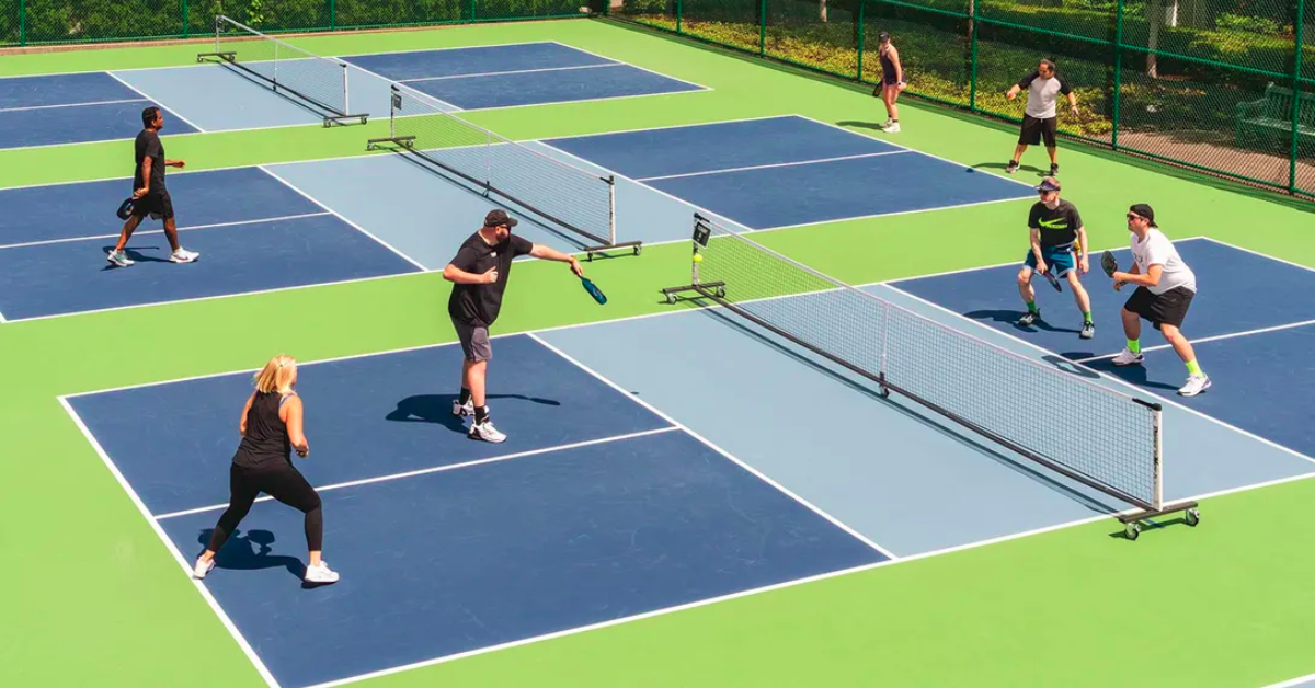 Pickleball là một môn thể thao kết hợp giữa tennis, cầu lông và bóng bàn. Trò chơi diễn ra trên một sân có kích thước nhỏ hơn sân tennis, với lưới thấp và người chơi sử dụng vợt nhẹ để đánh một quả bóng rỗng.