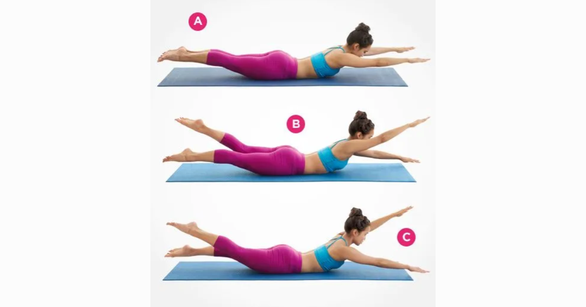 Bài tập Swimming (Bơi trên cạn) được thực hiện ở tư thế nằm sấp và giúp tăng cường cơ lưng, cơ mông, gân kheo và cơ vai. Bạn nâng tay và chân đối diện lên cao, sau đó luân phiên đánh tay và chân một cách nhanh chóng. Bài tập này không chỉ là một bài tập pilates toàn thân giúp săn chắc mà còn cải thiện khả năng phối hợp của cơ thể. Nó đặc biệt hiệu quả trong việc chống lại tư thế gù lưng.