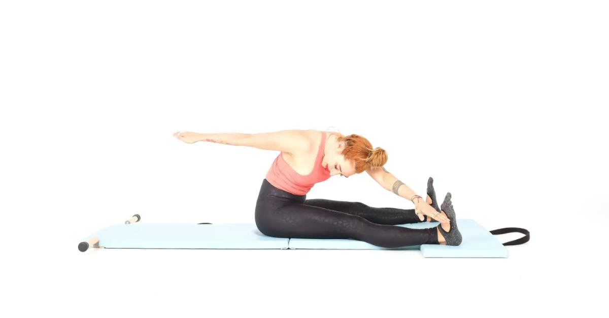 Đây là một bài tập thử thách sức mạnh cơ bụng và sự linh hoạt của cột sống, yêu cầu sự kiểm soát trong từng chuyển động.