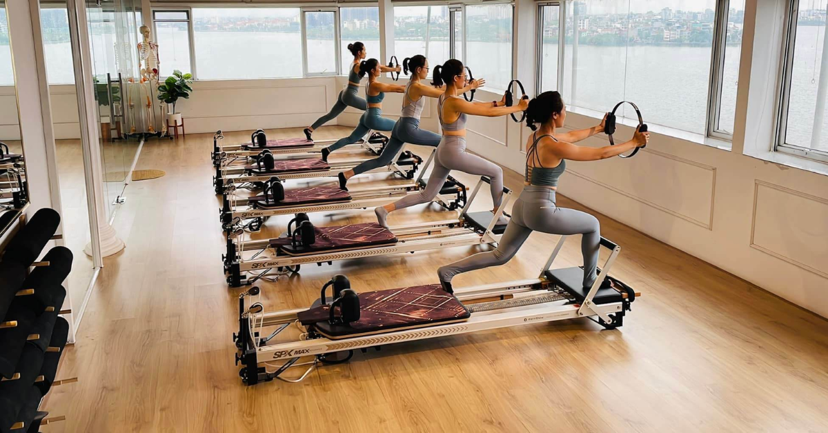 Tập luyện với máy móc chuyên dụng (Equipment): Bao gồm các loại máy như Reformer, Cadillac, Stability Chair và Barrel. Các máy móc này được thiết kế với hệ thống lò xo, dây kéo, giúp người tập điều chỉnh mức độ kháng lực một cách linh hoạt. Hình thức này hỗ trợ tối đa cho việc phục hồi chấn thương, cải thiện sự ổn định và tăng cường sức mạnh cơ bắp chuyên sâu.