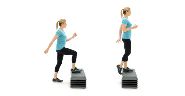 Cách thực hiện: Dùng ghế hoặc bục chắc chắn, bước một chân lên rồi xuống. Lặp lại 10-12 lần mỗi chân.