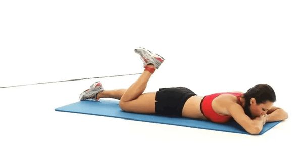 Cách thực hiện: Nằm sấp, co gót chân về gần mông rồi duỗi ra. Có thể dùng dây kháng lực nhẹ.