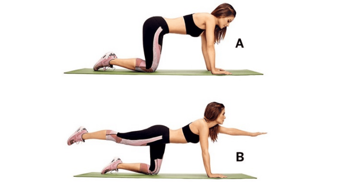 Động tác này giúp tăng sức mạnh cho cơ lưng và bụng, cải thiện sự ổn định của cột sống. Từ tư thế chống tay gối, duỗi thẳng tay phải và chân trái, giữ 5–10 giây, sau đó đổi bên.