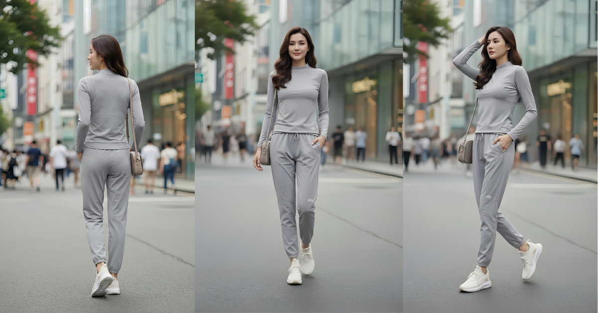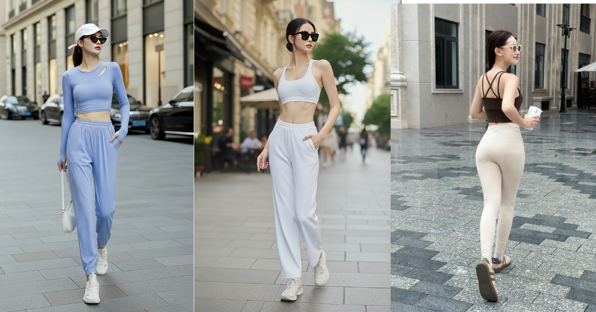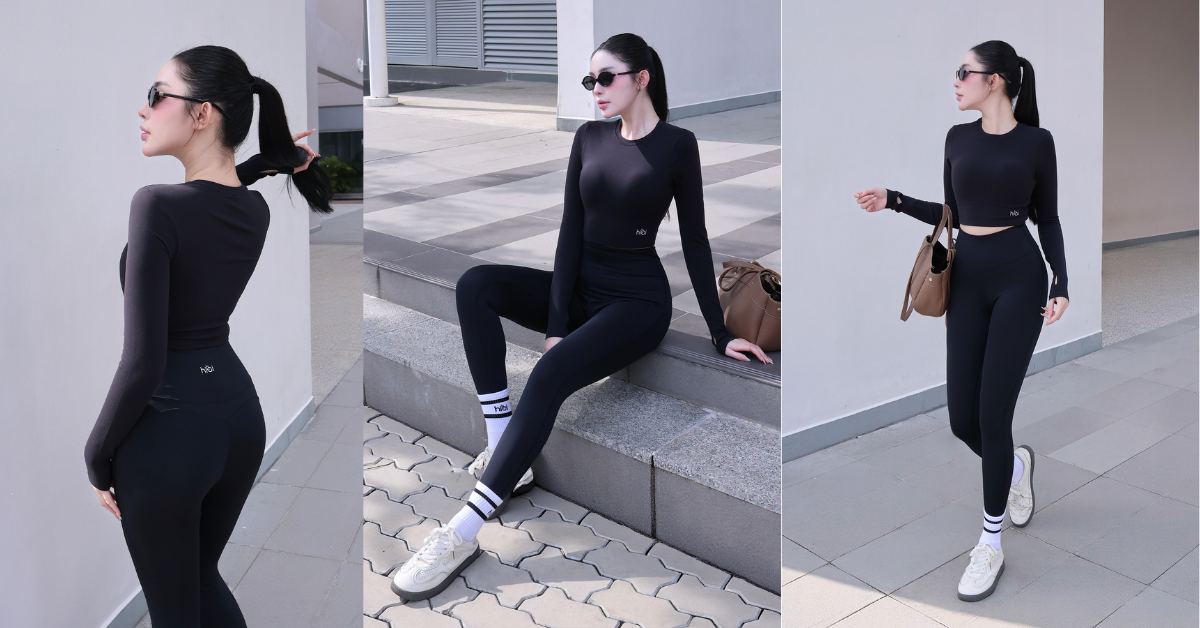 Kiểu dáng "Activewear to Streetwear": Các thiết kế như áo bra cổ vuông, áo khoác lửng hay quần legging không đường may (seamless) được chăm chút tỉ mỉ về thẩm mỹ. Chị em có thể dễ dàng phối cùng sneaker và túi xách để tạo nên một outfit năng động đi dạo phố hay làm việc tại quán cà phê.