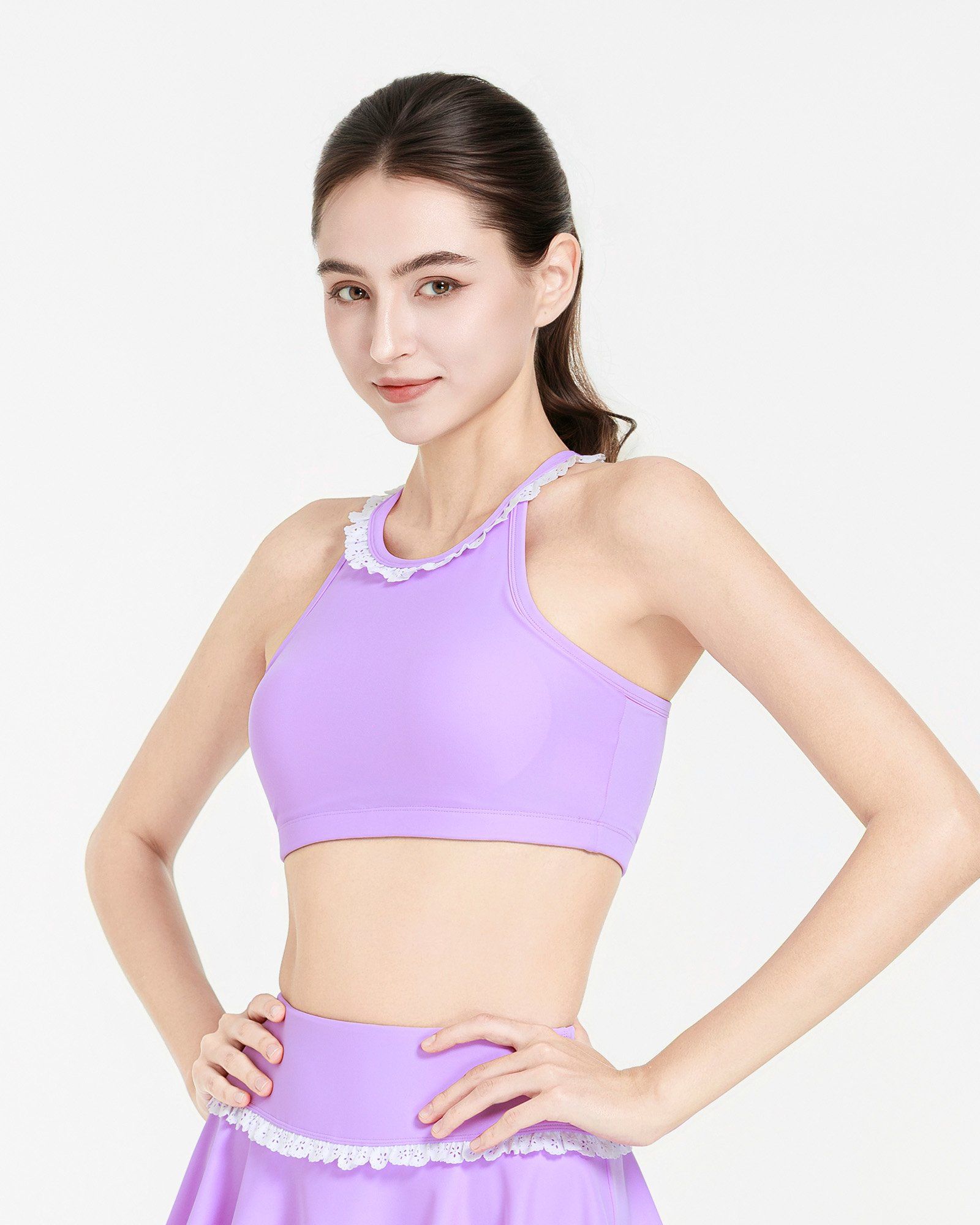 Áo bơi nữ Hibi Sports SS010 - Kiểu bra cổ yếm nhún bèo trắng, kèm mút