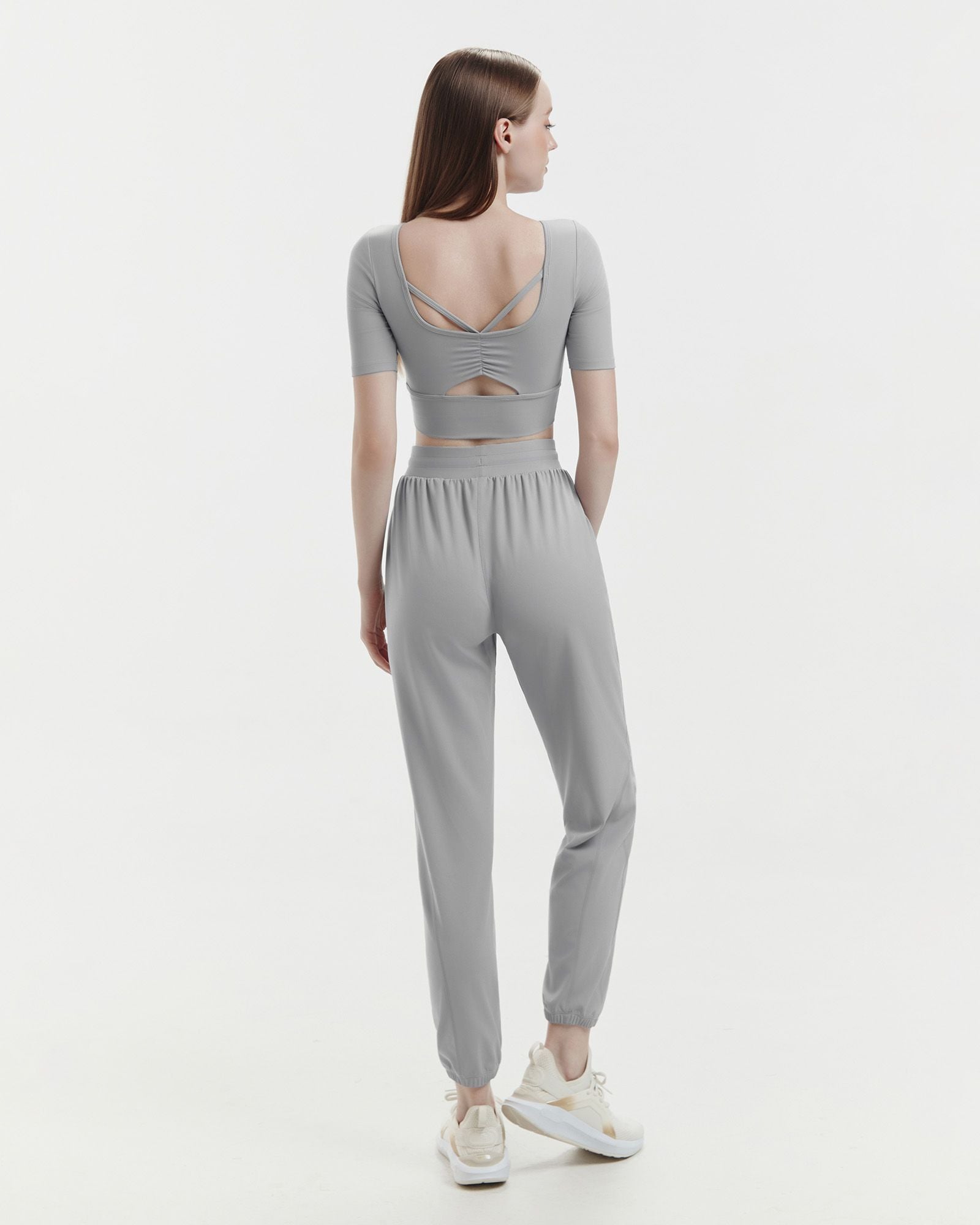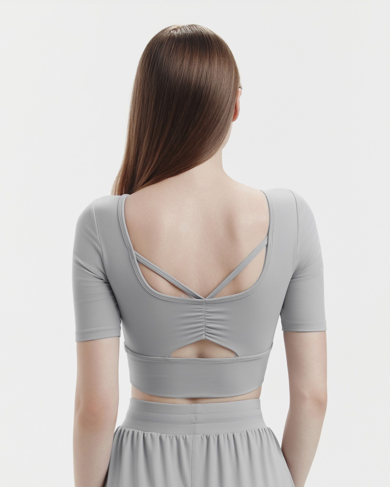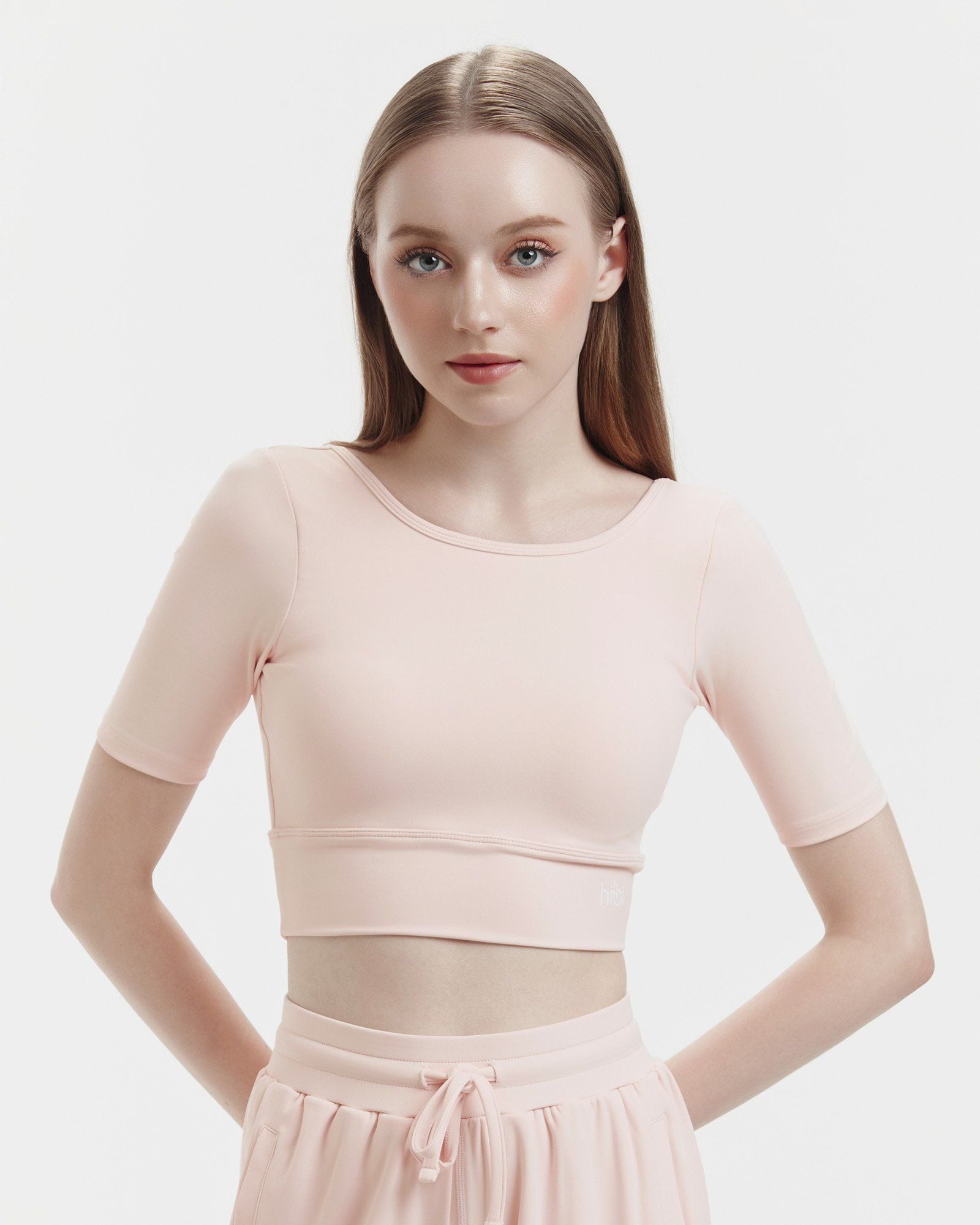Tên sản phẩm: Áo croptop tập Yoga Hibi Sports CR847 kiểu tay lửng phối 2 dây cách điệu, kèm mút ngực
