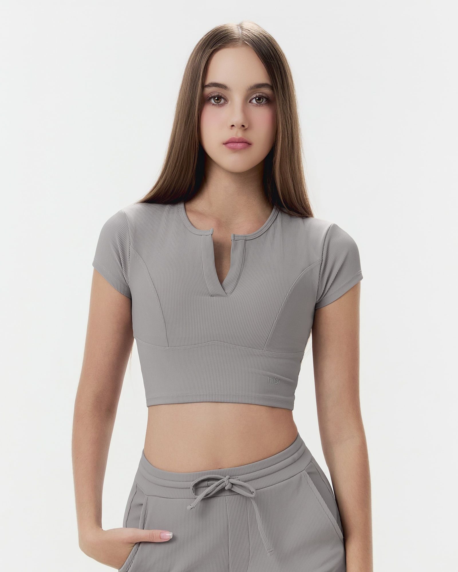 - Mẫu áo Croptop CR853 kiểu cổ tròn xẻ V, áo tạo nên sự kín đáo, thanh lịch mà vẫn quyến rũ. Áo được cách điệu giúp tôn lên vẻ đẹp tự nhiên nhưng vẫn quyến rũ lạ thường tạo nên một vẻ ngoài tinh tế và thanh lịch. Kiểu dáng croptop tôn lên vẻ nóng bỏng và săn chắc của bụng, giúp bạn tự tin khoe được thành quả tập luyện.