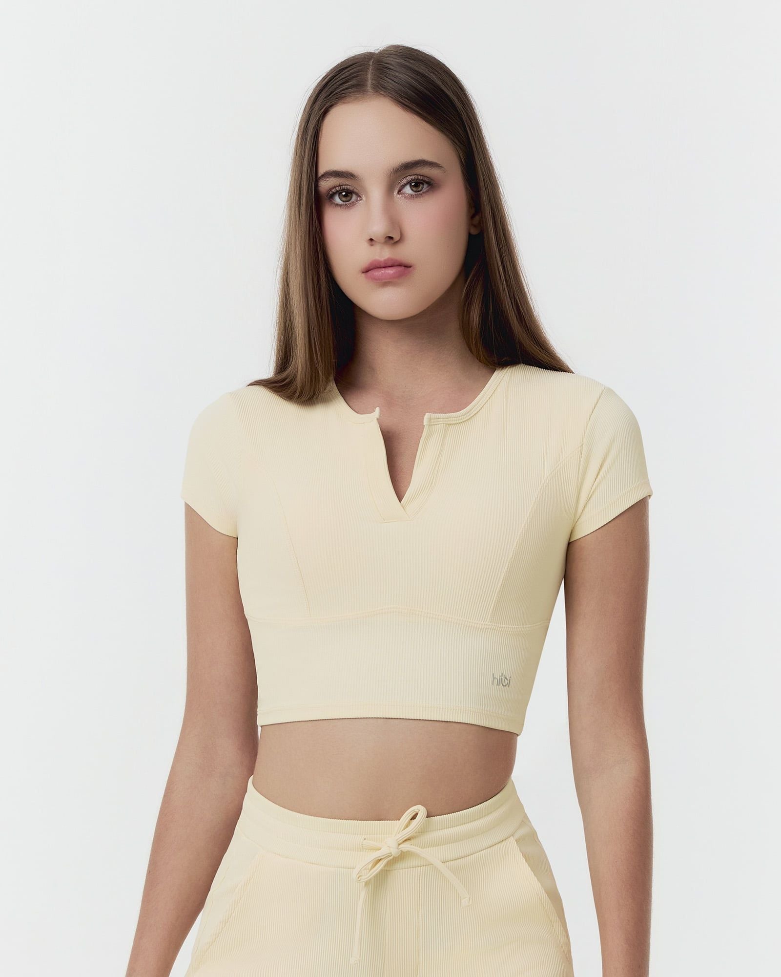 Áo croptop tập Yoga Gym Luxury Hibi Sports CR853 kiểu cổ tròn xẻ V, chất vải Rib cao cấp, kèm mút ngực