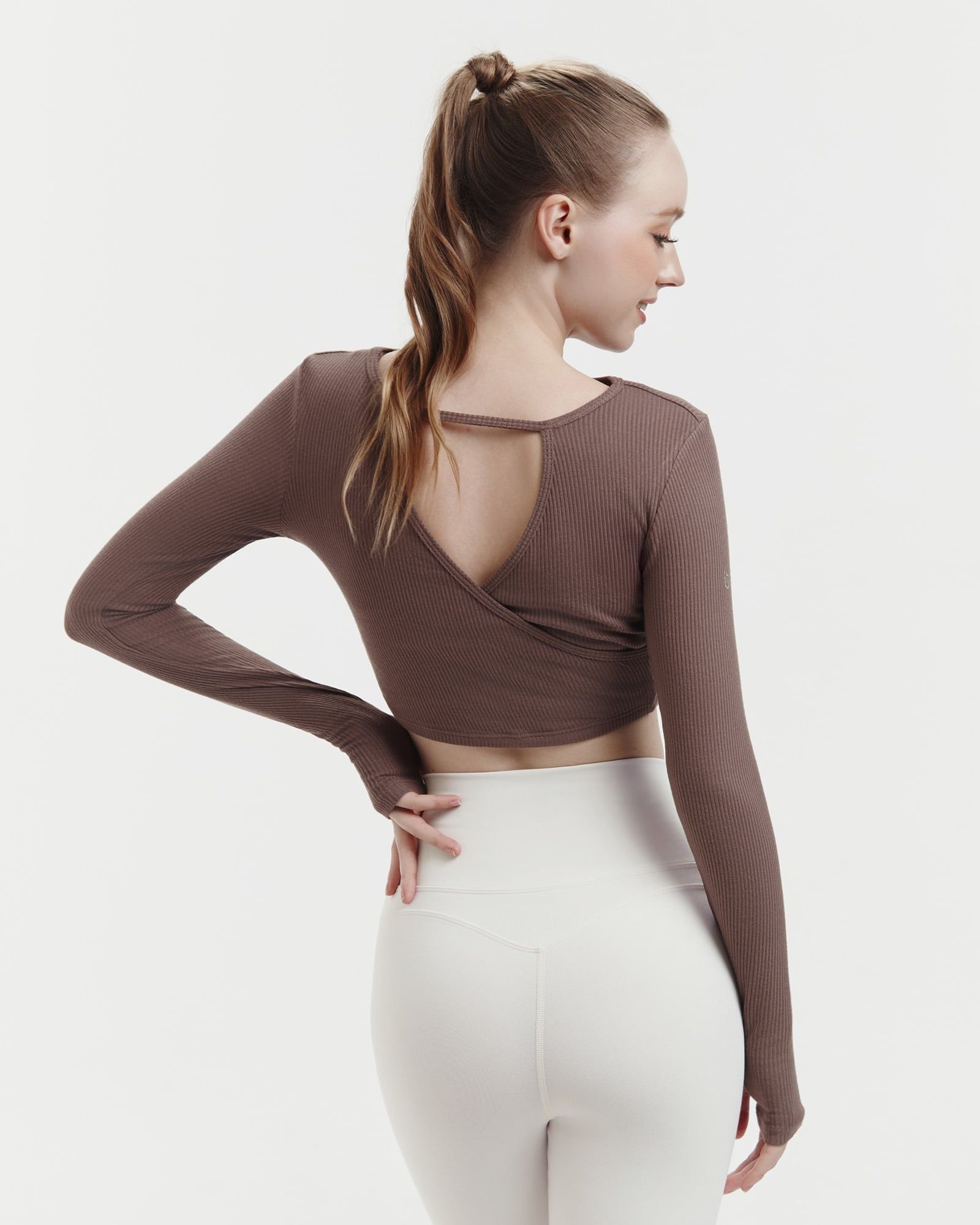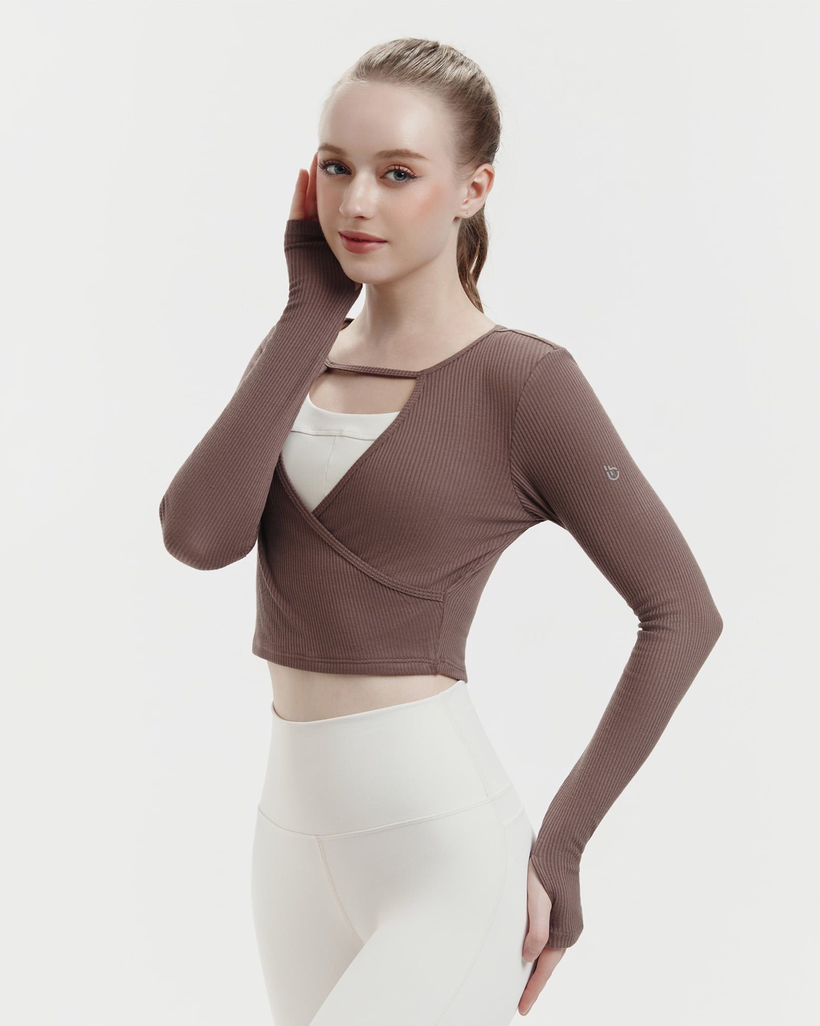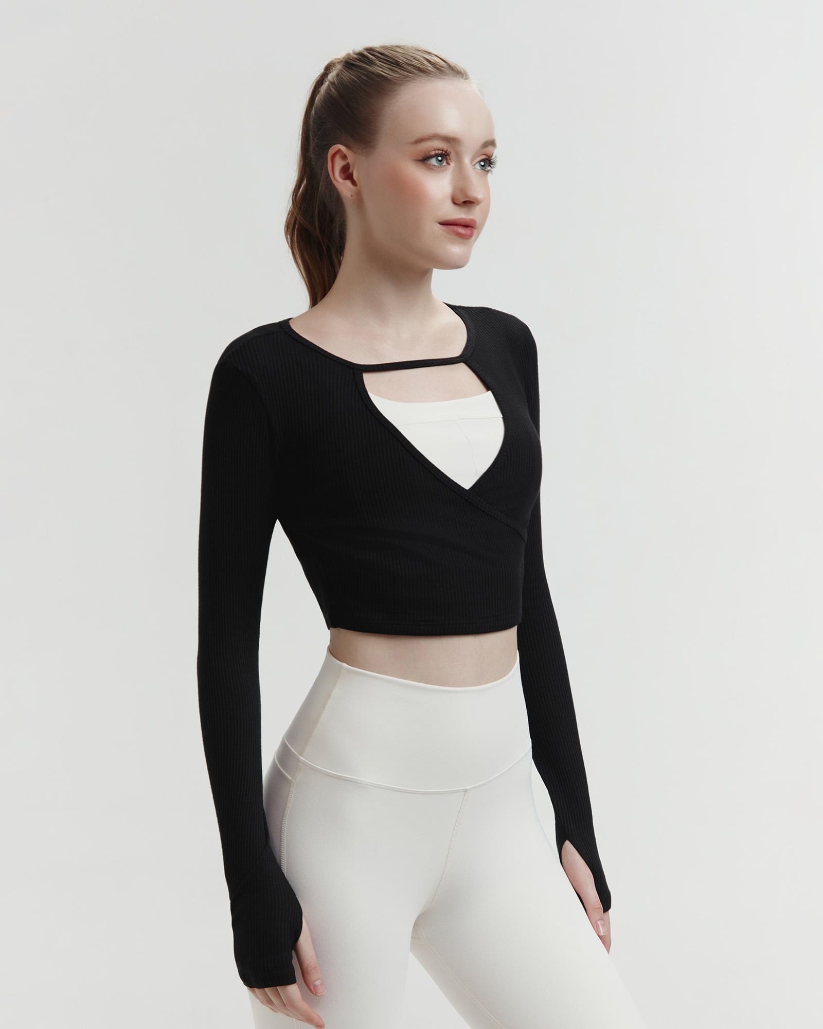 Áo tank tập Yoga Gym Hibi Sports TA717 Kiểu khoét tim mặc 2 mặt, tay dài xỏ ngón - Mặc ngoài áo bra
