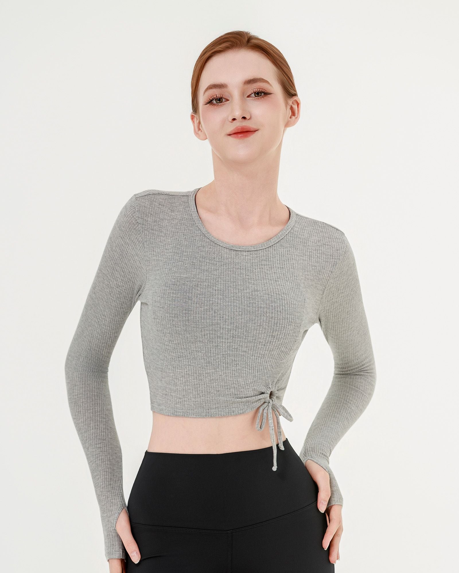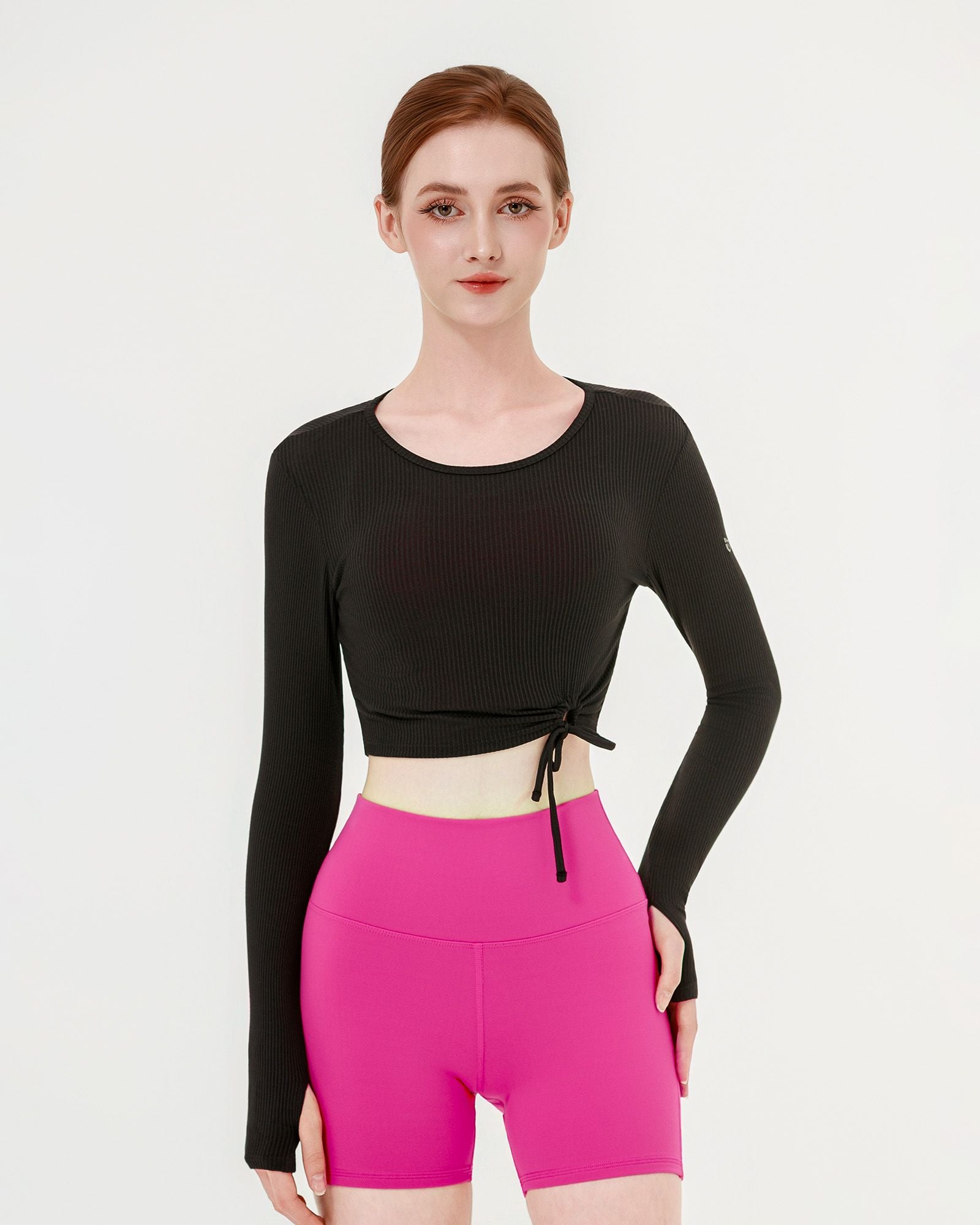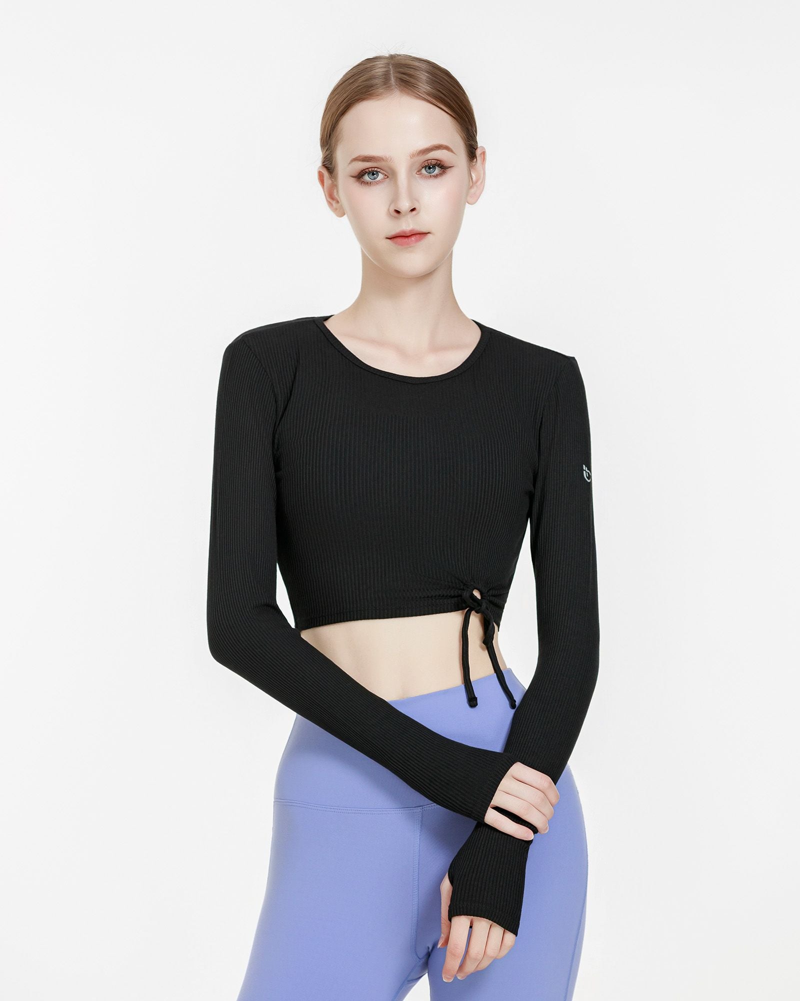 Áo Tank tập Yoga Gym Hibi Sports TA716 Kiểu khoét tròn cột dây, tay dài xỏ ngón - Mặc ngoài áo bra