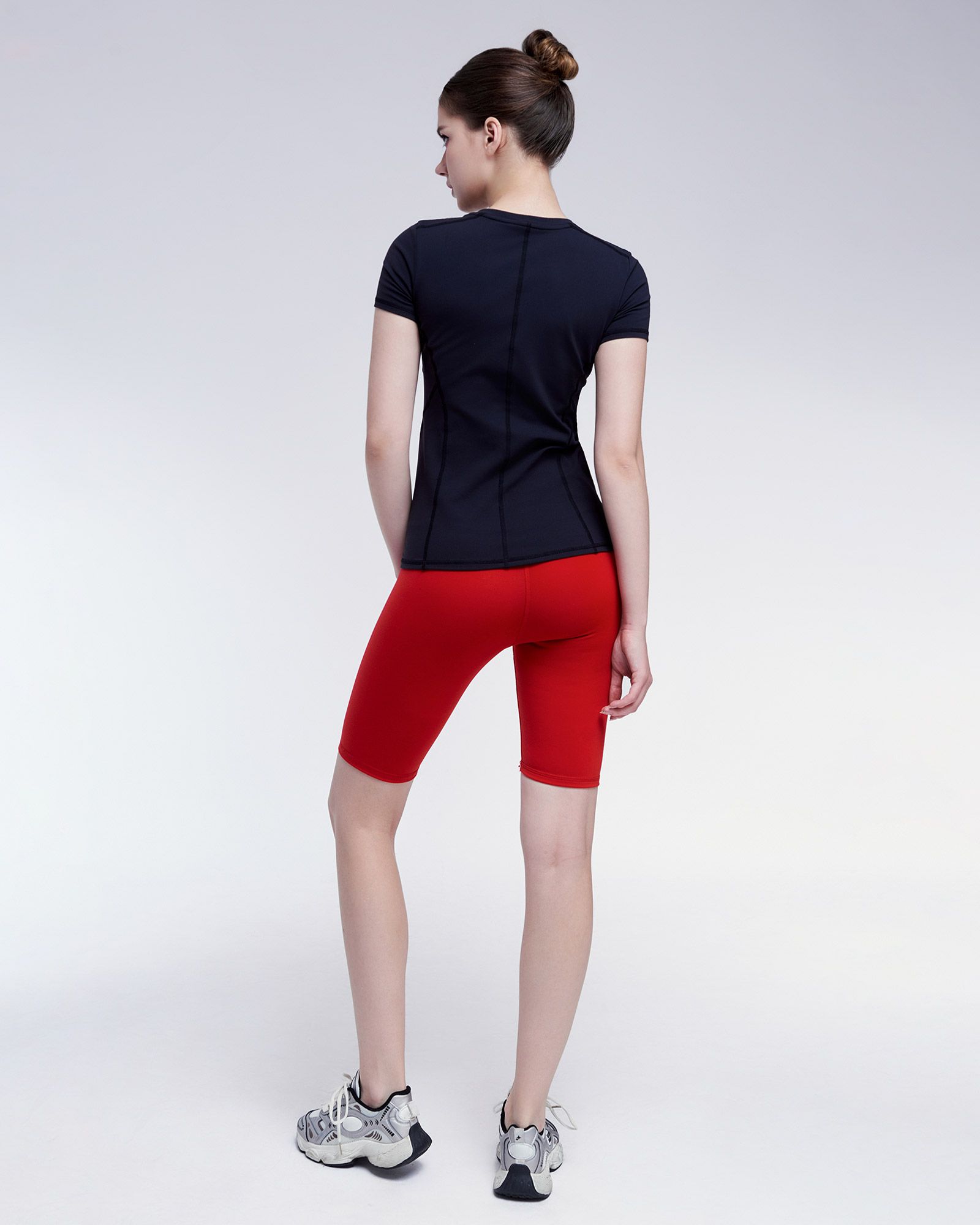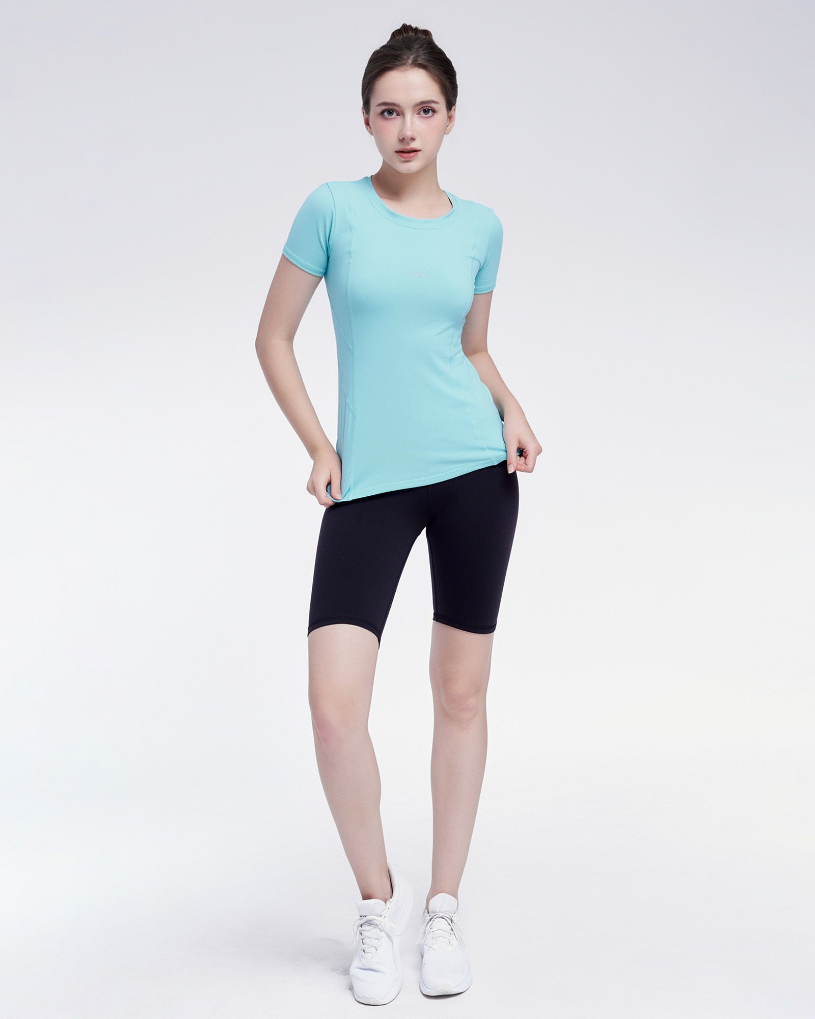 - Mẫu áo T-shirt thiết kế với kiểu dáng dài cổ tròn, áo tạo nên sự thanh lịch và kín đáo cho mọi quý cô. Áo được cách điệu những đường cut out giúp tôn lên vẻ đẹp tự nhiên của cổ và vùng vai, tạo nên một vẻ ngoài tinh tế và thanh lịch. Kiểu dáng kín đáo nhưng vẫn đủ khoe lên 2 vòng quyến rũ và đem sự tự tin trong quá trình tập luyện.